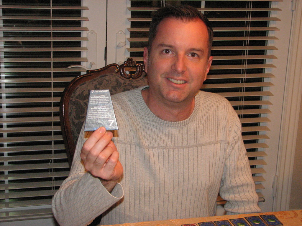 Once again, Bob, Tim, Wayne, Denny and myself played Twilight Imperium. We were expecting Ross but unfortunately he was a no show. At any rate, when were setting up the map I decided to place an artifact worth one victory point in the wormhole nexus on the planet of Malice. Because of that one decision, nearly the entire universe came crashing down on the Wormhole Nexus and after the smoke had settled it was Wayne who was last man standing. In fact, I believe it was one of the most, if not the most, decisive win made by a TI3 player since we have playing Twilight and kudos should go out to Wayne for a magnificent win. Bob came in a distant second and the rest of us huddled around third place.
